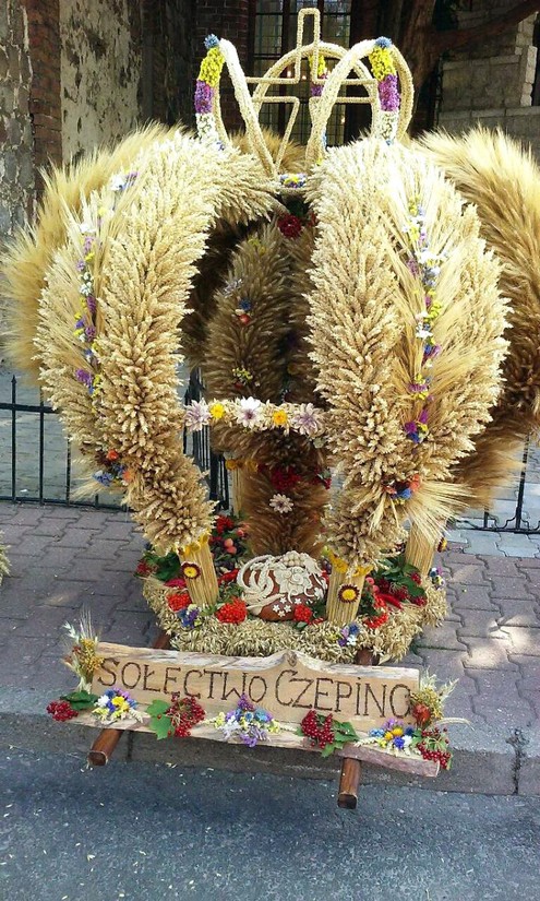 z wieńcem dożynkowym z Czepina
